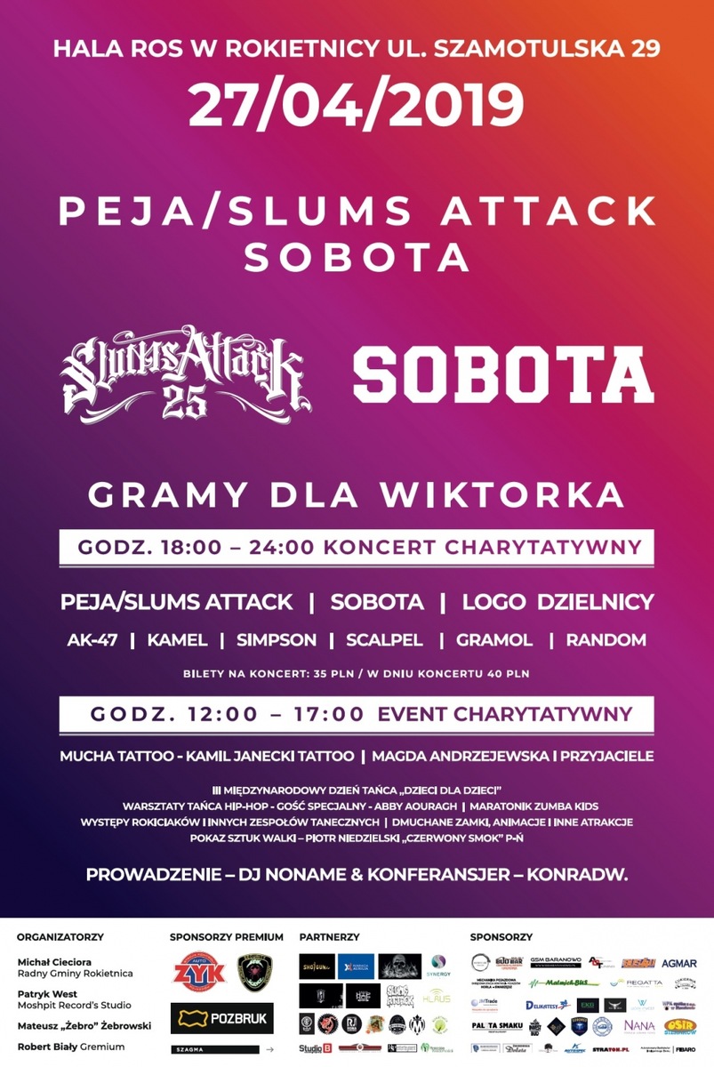 PEJA/SLUMS ATTACK 25 to jedyny i niepowtarzalny koncert charytatywny GRAMY DLA WIKTORKA – dziecko wybudzone ze śpiączki w klinice BUDZIK z koniecznością długotrwałej rehabilitacji.*******