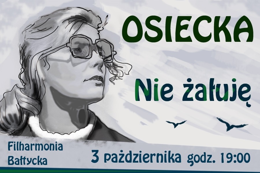 Projekt Osiecka „Nie żałuję” 3 października, Filharmonia Bałtycka, godz. 19:00 Piosenki Agnieszki Osieckiej ciągle fascynują i wzruszają. Niezapomniane przeboje usłyszymy w wykonaniu charyzmatycznej solistki Teatru Roma - Edyty Krzemień. Artystce towarzyszyć będzie zespół Sentido pod kierownictwem muzycznym uznanego akordeonisty Piotra Kopietza. W programie koncertu m.in.: „Wariatka tańczy”, „Niech żyje bal”, „Miasteczko cud”, „Nie żałuję”, „Komu weselne dzieci”, „Ucisz serce”, „Kiedy mnie już nie będzie”. Dzięki wykorzystaniu dźwięków koncertowego akordeonu, aksamitnego brzmienia wokalu oraz unikatowych, etnicznych instrumentów strunowych i kurdyjskich instrumentów perkusyjnych, artyści zespołu "Sentido" dodatkowo ubierają znane i lubiane...