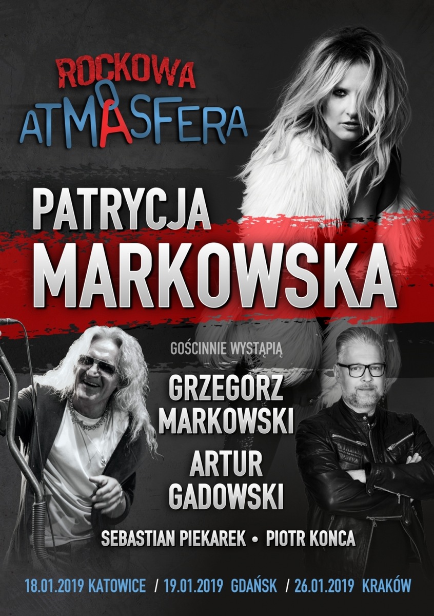 Zatem podczas Rockowej Atmasfery z Patrycją Markowską szykuje nam się prawdziwy rollercoaster nastrojów, dźwięków, wspaniałych melodii i wykrzyczanych słów. Tym bardziej, że w roli gości zobaczymy i usłyszymy tych, których uwielbiamy od lat: Grzegorza Markowskiego (zbieżność nazwisk nieprzypadkowa) oraz Artura Gadowskiego wraz z gitarzystami Sebastianem Piekarkiem i Piotrem Koncą.