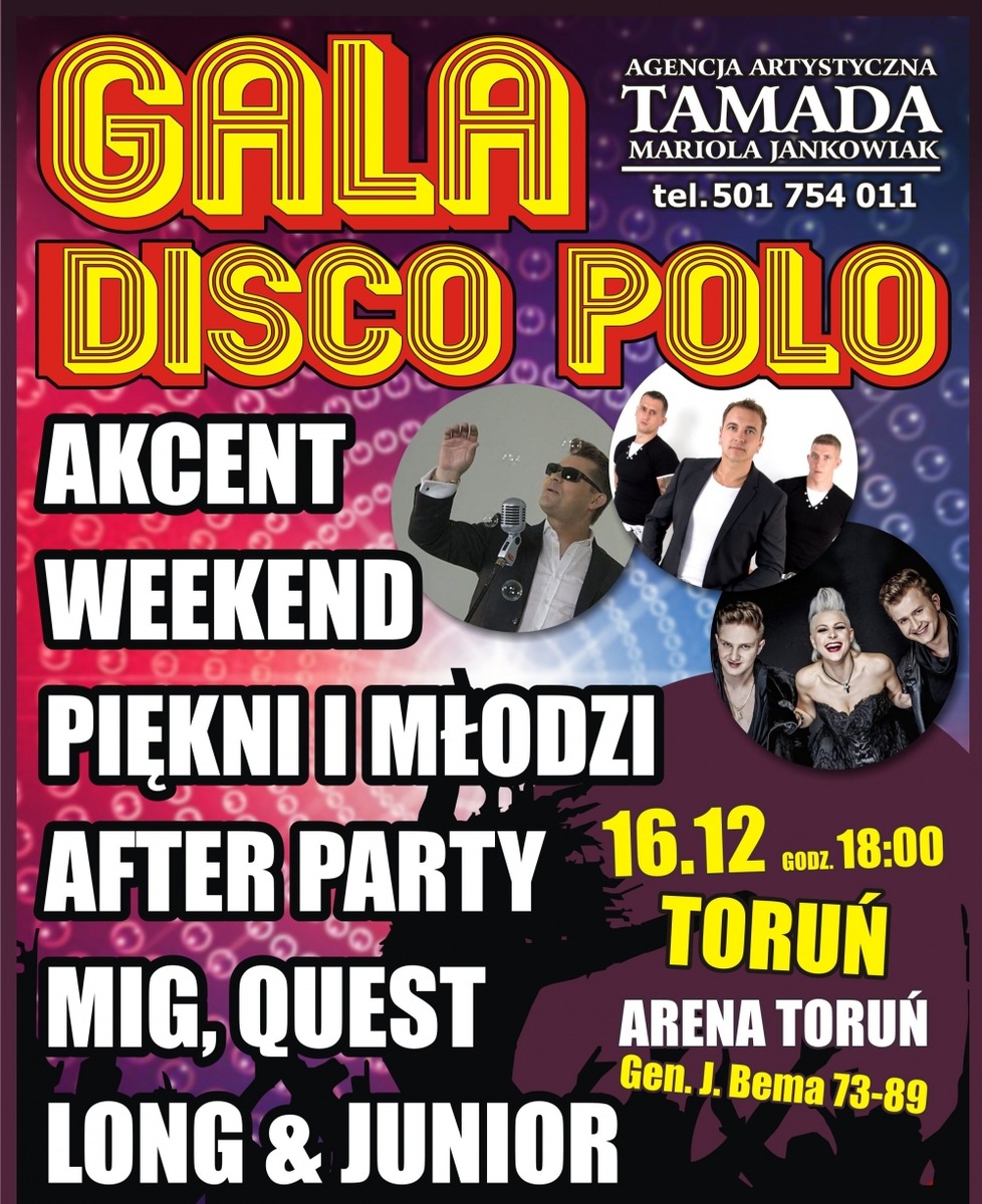 Największa Gala Disco Polo w Polsce. To już trzecia edycja wielkiej Gali. Sobota 16 Grudnia 2017 godzina 18:00. Arena Toruń ul. Bema
