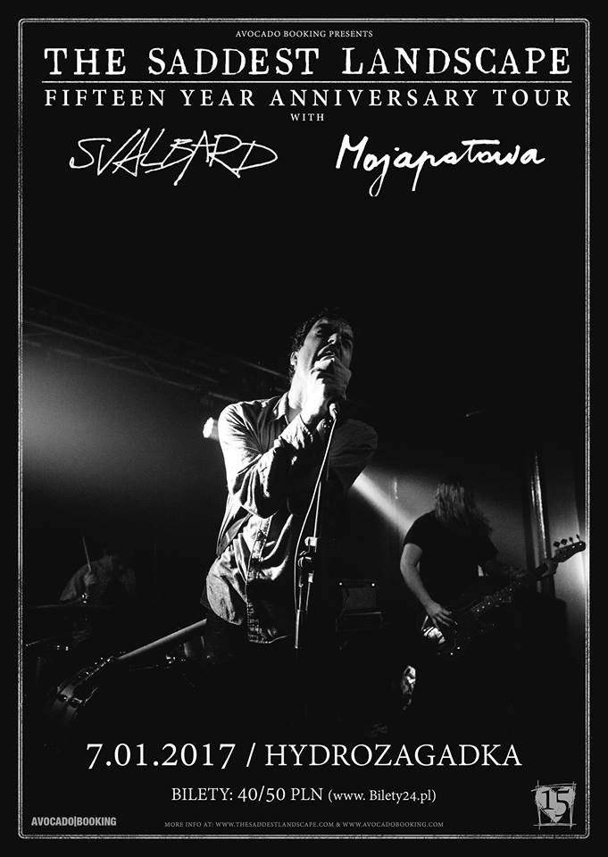 THE SADDEST LANDSCAPE (post-hardcore/screamo/USA) https://www.facebook.com/TheSaddestLandscape https://www.youtube.com/watch?v=bE7yK1-QbW4 The Saddest Landscape to jeden z ważniejszych, a mniej znanych, zespółów nurtu post-hardcore. Powstali w 2002 roku na północno-wschodnim wybrzeżu USA, mają na koncie ponad 25 wydanictw. Nigdy nie trafili na pierwsze strony prasy muzycznej, zawsze po cichu robili swoje, niejako w undergroundzie. Ale bez The Saddest Landscape trudno sobie wyobrazić emocjonalne post-hardcore'owe granie w stylu Touche Amore, Pianos Become The Teeth czy La Dispute. W 2017 roku zespół obchodzić będzie 15-lecie istnienia i z tej okazji wyruszy w bardzo krótką europejską trasę, jednocześnie promując swoje najnowsze wydawnictwo...