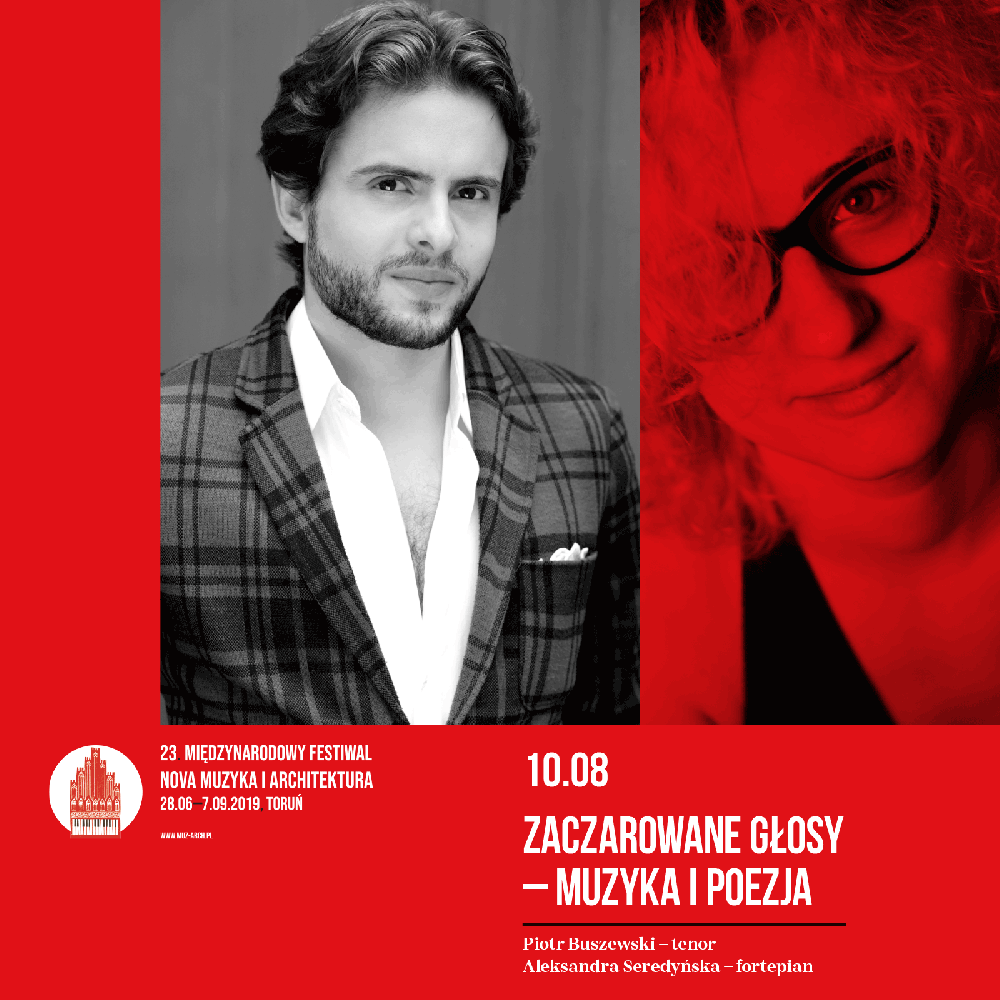 Piotr Buszewski – objawienie i wschodząca gwiazda scen operowych całego świata, który swoją edukację rozpoczął na Uniwersytecie Muzycznym F. Chopina w Warszawie, a ukończył w słynnym Julliard School w Nowym Jorku. Podczas recitalu w jego wykonaniu, przy akompaniamencie Aleksandry Seredyńskiej, usłyszymy cykl pieśni K. Szymanowskiego (z op. 11) oraz Sonety F. Liszta do poezji F. Petrarki. W Roku Moniuszkowskim artyści zaprezentują także wybór pieśni tego kompozytora. Recital zamknie muzyka włoska, m.in. efektowna i ekspresyjna pieśń neapolitańska Marechiare i nie mniej słynna Musica proibita autorstwa M. S. L. Gastaldona.