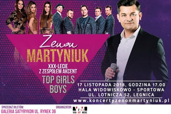 Król jest tylko jeden! Niezaprzeczalnie jest nim Zenek Martyniuk, który na scenie disco-polo rządzi już od 30 lat. Z tej okazji zapraszamy na niezwykłe jubileuszowe koncerty Zenona Martyniuka gdzie po raz pierwszy będziemy mogli zobaczyć i usłyszeć instrumenty muzyczne inne niż dotychczas! Zenon w doborowym towarzystwie topowych zespołów jak Boys czy pięknych Top Girls to nie lada gratka dla miłośników muzyki disco! Zespół Akcent z Zenonem Martyniukiem na czele to prawdziwa legenda na scenie disco polo oraz niepodważalnie jeden z najpopularniejszych obecnie wykonawców tego gatunku, o czym świadczą miliony wyświetleń na kanale YouTube oraz błyskawicznie sprzedające się bilety. Nie przegap! Kup bilet i baw się razem z nami! *******