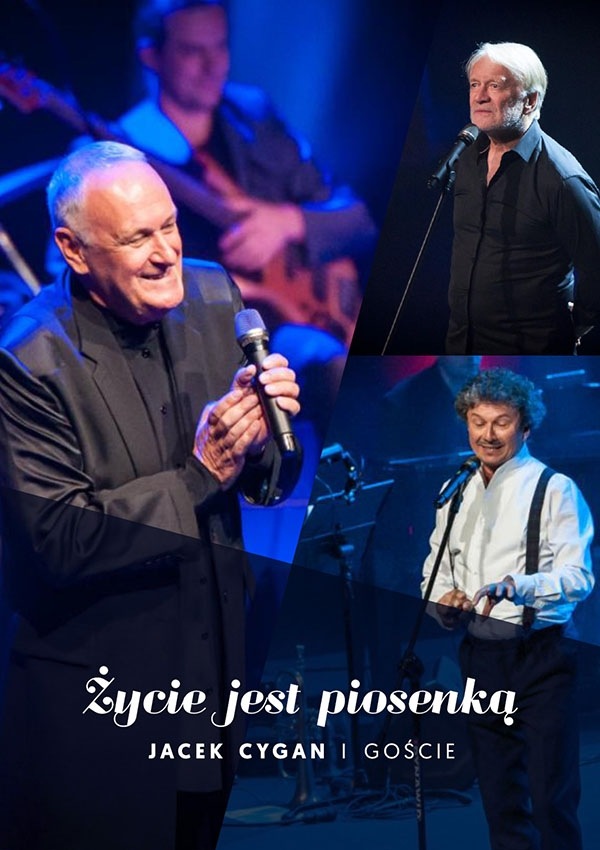 Po ogromnym sukcesie koncertów „Życie jest piosenką”, Artyści ponownie wyruszyli w trasę by świętować 40-lecie twórczości artystycznej- Jacka Cygana. Towarzyszyć mu będą doskonali Goście: Daniel Olbrychski, Jacek Wójcicki, Kamila Klimczak, Zosia Nowakowska, Joanna Trzepiecińska. Koncert „Życie jest piosenką” to zabawna i sentymentalna podróż, przywołująca ponadczasowe utwory napisane przez Jacka Cygana. Artystom na scenie towarzyszyć będzie Kameleon Quintet p/k Radosława Labahua. Recenzje Widzów: „Rewelacyjny, cudowny, wzruszający i porywający koncert! Pełna sala, owacja na stojąco. Duch w narodzie nie umarł!!!” (Maria) „Klimatyczny wieczór z muzyką, poezją i humorem pana Jacka Cygana. Artyści dali z siebie wszystko bawiąc publiczność przez...
