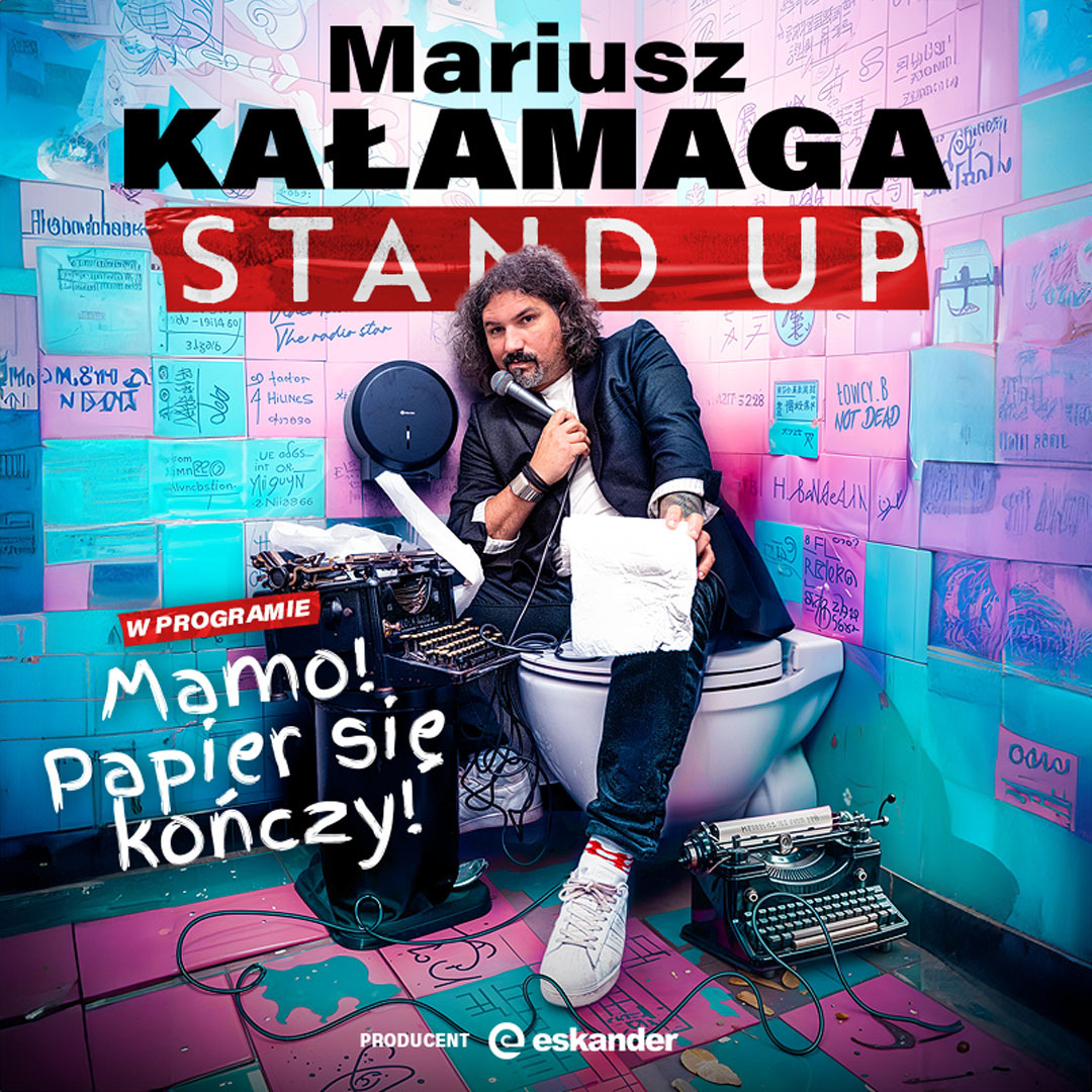 Mariusz Kałamaga – na co dzień budzi ludzi w RMF FM i tam go tylko słychać. Wieczorami wychodzi ze swojej żeremi i budzi ludzi ze sceny i tam go widać. “Mamo! Papier się kończy!” to zestaw spostrzeżeń, przemyśleń, doświadczeń komika, które odpowiada myśli: Czyń BOBRO miej dystans, ssij a będzie Ci ssane. Papier się kończy a wraz z nim pewna era. Nadchodzi sztuczna inteligencja i prawdziwa głupota. bo człowiek, by nie myśleć wymyślił robota. Duża dawka, energii i próba pozytywnego spojrzenia na ten żywot człowieka miejmy nadzieję jeszcze poczciwego.