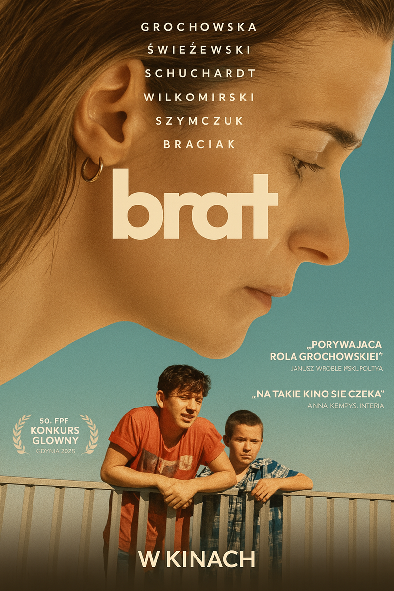 Poruszająca, brutalnie prawdziwa, lecz niepozbawiona czułości, historia walki o marzenia, rodzinę i miłość, autorstwa jednego z najciekawszych polskich reżyserów – Macieja Sobieszczańskiego („Zgoda”, „Performer”). „Brat” to opowieść o kruchej kobiecie, która musi znaleźć w sobie siłę, by przeprowadzić synów przez trudny czas dojrzewania bez ojca, ocalić ich niewinność i dać sobie szansę na osobiste szczęście. W filmie występują Agnieszka Grochowska, Julian Świeżewski, Tomasz Schuchardt i Jacek Braciak, a po raz pierwszy na ekranie pojawiają się zjawiskowi Filip Wiłkomirski i Tytus Szymczuk.