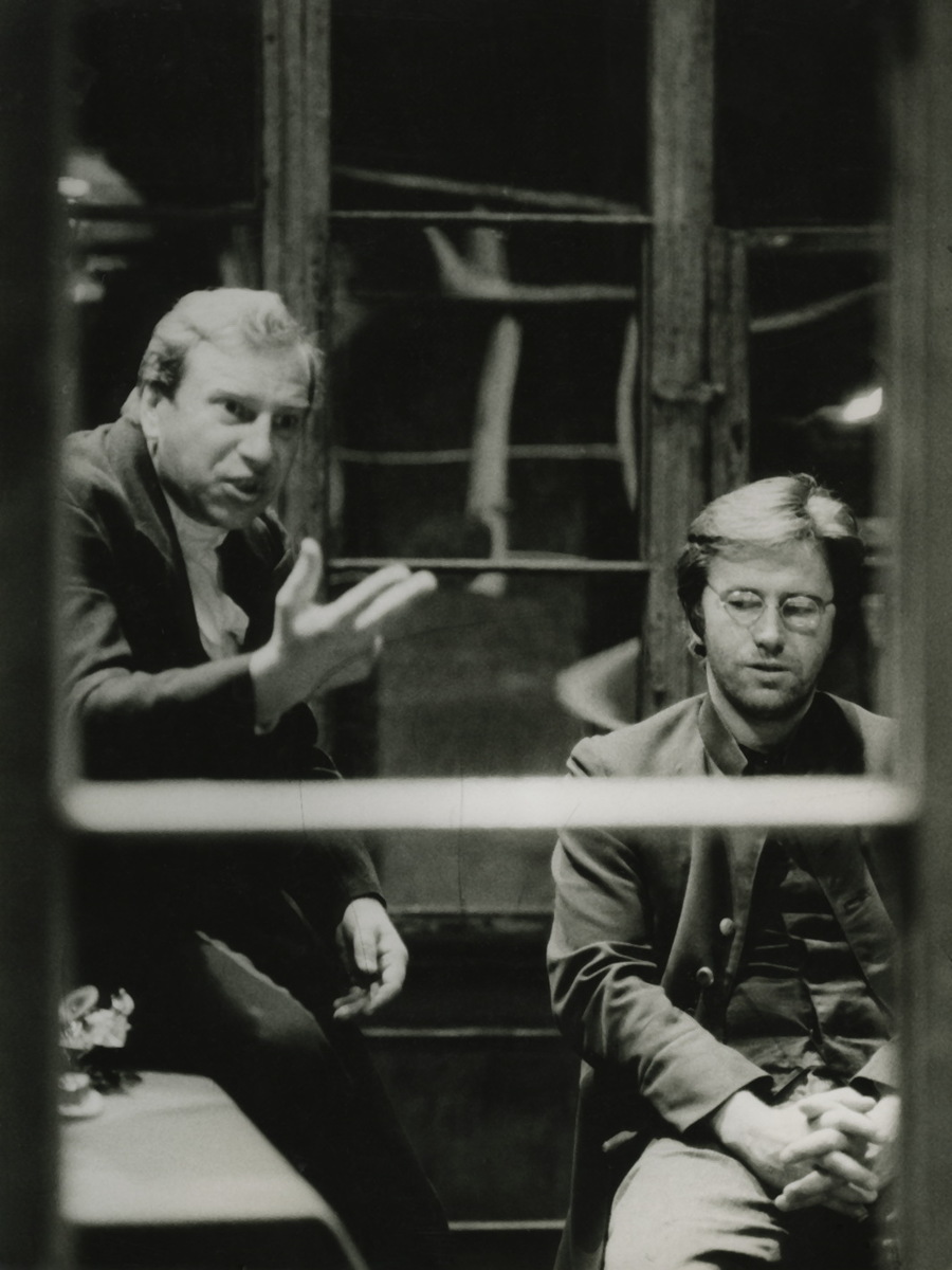 Dialogi zagrane tylko w całości, tak jak napisał je Dostojewski, są właśnie teatralne, co dostrzegliśmy wszyscy zaraz na pierwszych próbach. To zmaganie na śmieć życie mordercy i śledczego przykuło uwagę i było najbardziej teatralne. Musiałem użyć takiego chwytu, ponieważ robię teatr na dziś i w poczuciu własnych obowiązków wobec społeczeństwa. Zbrodnia i kara opowiada o motywach zbrodni ideowej. Motyw zbrodni wykłada Raskolnikow w powieści poprzez swój artykuł o zbrodni i poprzez wyjaśnienia, które wyciąga z niego śledczy. Ten artykuł właśnie i jego interpretacja, którą Raskolnikow rozwija przed Porfirym Pietrowiczem porusza mnie dziś w tej powieści najsilniej. Od hitlerowskich obozów zagłady do najnowszych morderstw politycznych. Za wszystkim tym stoi ‘przyzwolenie na krew’ jeśli to jest potrzebne (nawet nie konieczne) dla ogólnego postępu ludzkości!