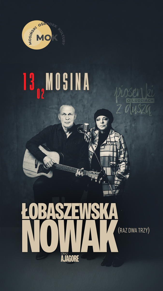 Duet wyjątkowych Artystów, dla których słowo jest równie ważne, co muzyka. Ich największe przeboje oraz te mniej znane, ale ukochane utwory. W pięknych - nowych - aranżacjach, przygotowanych i wykonywanych wspólnie z przyjaciółmi z zespołu Ajagore. Już 13 lutego, w wigilię Walentynek - w Mosińskim Ośrodku Kultury!