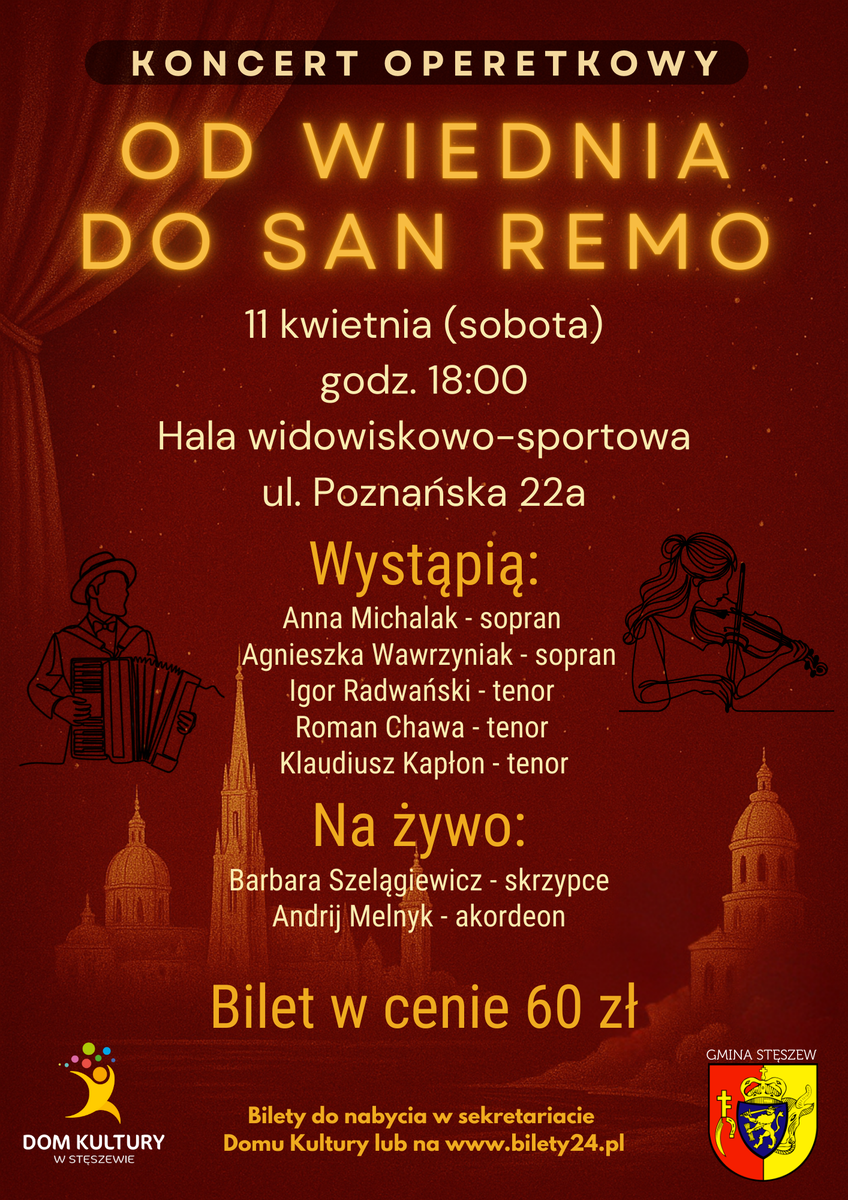Zapraszamy na niezwykłą muzyczną podróż, podczas której zabrzmią największe przeboje kompozytorów związanych z Austrią, takich jak J. Strauss, F. Lehár, E. Kálmán czy R. Stolz. W programie znajdą się arie i duety z najsłynniejszych operetek, między innymi: „Wielka sława to żart”, „Twoim jest serce me”, „Duet Księżycowy” oraz „Brunetki, blondynki”. Piękne melodie i znane motywy operetkowe przeniosą słuchaczy w świat elegancji, emocji i niezwykłej lekkości muzyki.