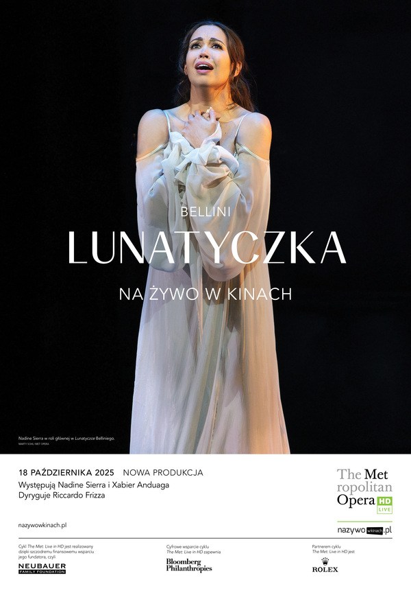 W swojej nowej inscenizacji Rolando Villazón – tenor, który z powodzeniem rozwija karierę reżyserską – pozostaje wierny oryginalnemu alpejskiemu krajobrazowi, ale wykorzystuje motyw snu do głębszej eksploracji emocjonalnych i psychologicznych zakamarków ludzkiego umysłu. Obok Nadine Sierry na scenie wystąpią: tenor Xabier Anduaga jako narzeczony Aminy, Elvino, sopranistka Sydney Mancasola w roli jej rywalki Lisy oraz bas Alexander Vinogradov jako hrabia Rodolfo. Za pulpitem dyrygenckim stanie Riccardo Frizza. Jedno z najbardziej zachwycających dzieł operowych zostanie zaprezentowane na żywo z Metropolitan Opera w kinach na całym świecie już 18 października 2025 roku.