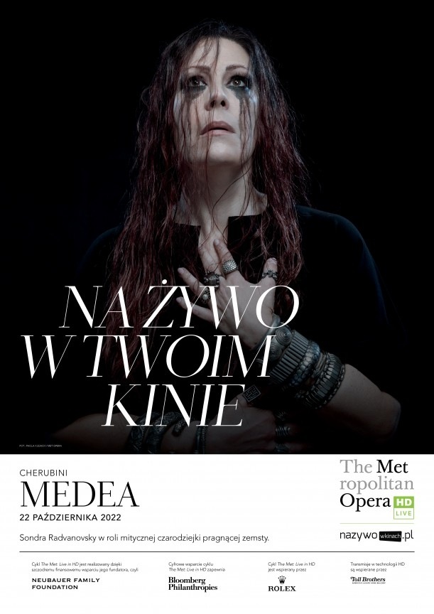 Sondra Radvanovsky, mająca w swym dorobku najbardziej wymagające partie sopranowe, powraca na scenę Met w roli mitologicznej czarodziejki, która nie cofnie się przed niczymw dążeniu do zemsty. Sopranistce partnerować będzie tenor Matthew Polenzani, w roli męża tytułowej bohaterki, Jazona. W tej premierowej dla Met inscenizacji opery Cherubiniego wystąpią również: Janai Brugge, jako rywalka Medei, Glauce; bas Michele Pertusi w roli jej ojca, Kreonta, władcy Koryntu, a także mezzosopranistka Ekaterina Gubanova jak powiernica Medei, Neris.