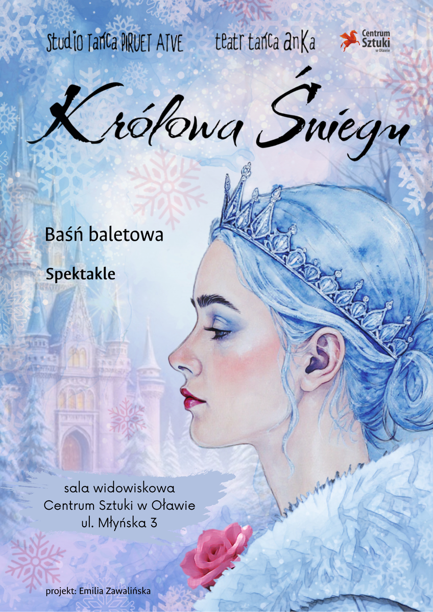 Zapraszamy na kolejną odsłonę bajki baletowej Studia Tańca Piruet Anny Staszewskiej! Tym razem proponujemy baśń pt. "Królowa Śniegu", na kanwie opowieści Hansa Christiana Andersena - "...o dziewczynce, która podejmuje ryzykowną i pełną przygód podróż, by ratować swojego przyjaciela." "Historia ta, to ponadczasowa opowieść o potędze przyjaźni, która pokonuje wszelkie przeciwności." "Roztańczony, wielobarwny spektakl z ekspresyjną muzyką i efektownymi wizualizacjami z pewnością nie pozostawi nikogo obojętnym."*******