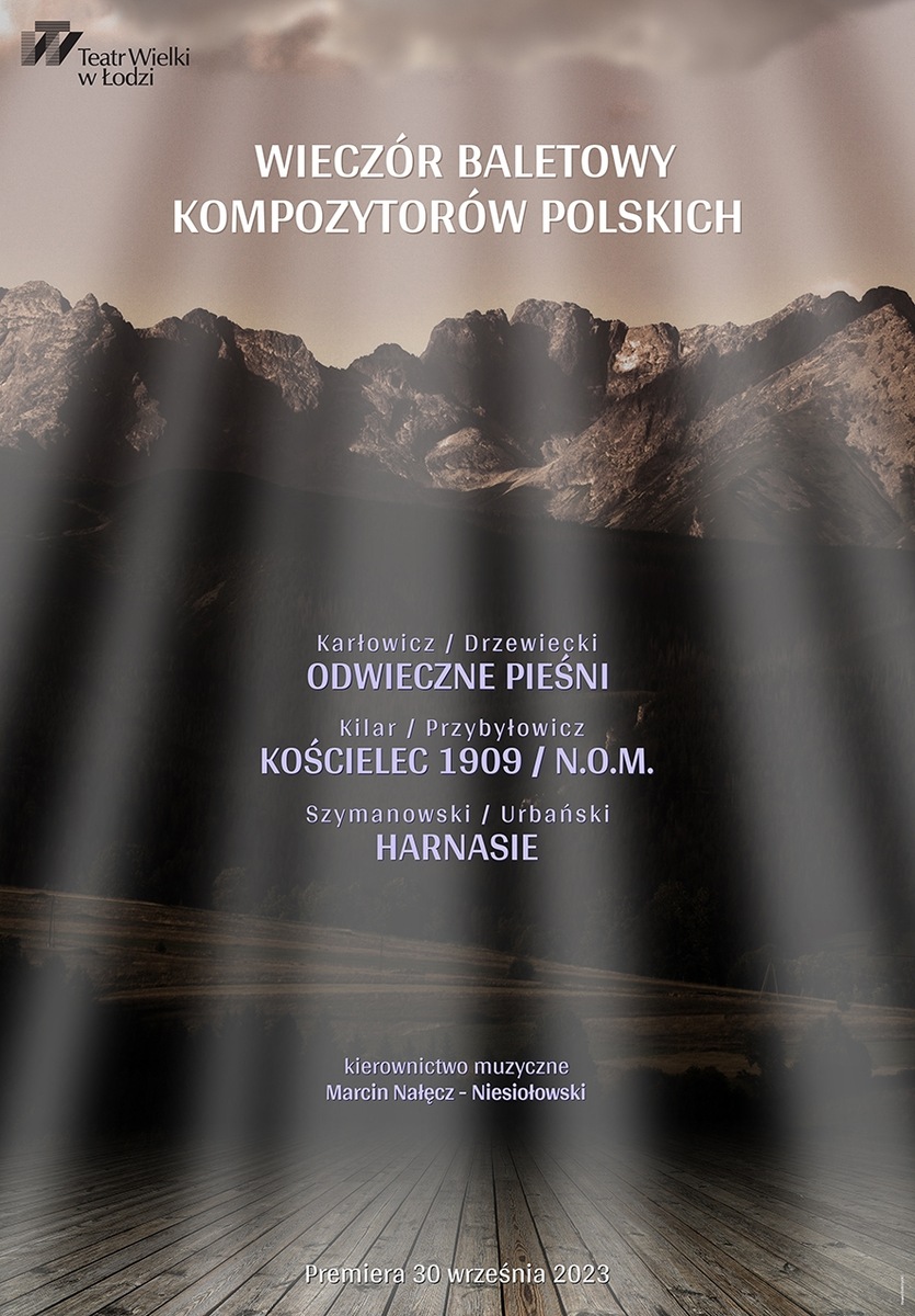 WIECZÓR KOMPOZYTORÓW POLSKICH: Mieczysław Karłowicz ODWIECZNE PIEŚNI poemat symfoniczny choreografia Conrad Drzewiecki przekaz choreograficzny Dominika Antkowiak Wojciech Kilar KOŚCIELEC 1909 N.O.M. |NON OMNIS MORIAR| poemat symfoniczny choreografia Jacek Przybyłowicz Karol Szymanowski HARNASIE balet pantomima choreografia Karol Urbański kierownictwo muzyczne Marcin Nałęcz-Niesiołowski premiera 30 września 2023 r. Wieczór baletowy do muzyki polskich kompozytorów zapowiada się wyjątkowo ciekawie. Dawno już na naszej scenie nie słyszeliśmy i nie widzieliśmy takiego zestawu wspaniałych kompozycji. Kompozycji, które łączy góralski folklor i miłość do muzyki. Kompozycja Wojciecha Kilara Kościelec 1909 to poemat symfoniczny powstały...