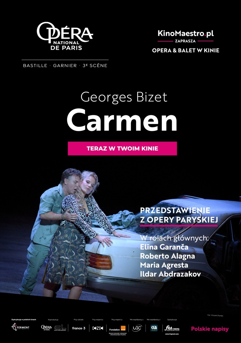 Elīna Garanča i Roberto Alagna, dwoje śpiewaków zaliczanych obecnie do najlepszych na świecie wykonawców ról Carmen i Don Joségo, pojawiają się na scenie Opery Paryskiej, by wystąpić w skandalizującej inscenizacji opery Georges’a Bizeta, którą przygotował Calixto Bieito, radykalizujący hiszpański reżyser teatralny. Towarzyszy im Ildar Abdrazakov jako toreador Escamillo, artysta występujący od nowojorskiej The Metropolitan Opera po Teatr Bolszoj w Moskwie. Błyskotliwą partyturę francuskiego kompozytora odczytuje na nowo Sir Mark Elder, brytyjski dyrygent, odpowiedzialny za wieloletnie sukcesy English National Opera w Londynie. Na scenie zobaczymy hiszpańskie słońce i piach areny, ale realizatorzy zadbali, by XIX-wieczny folklor ustąpił miejsca temu XXI-wiecznemu.