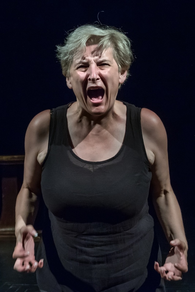 Monodram „Zastygając w bezruchu", to podróż przez labirynt kobiecej duszy. To echo głosów, które przez lata wpisały się w jej świadomość, formując ją wbrew jej woli. To spektakl o słowach.