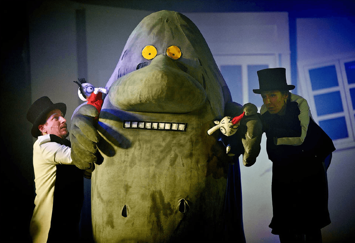 Wszystkich fanów kreski Tove Janson możemy zapewnić, że Muminki w Teatrze Andersena wyglądają jak Muminki. Scenografia Mariki Wojciechowskiej, jest niczym wyjęta z książek, nieco komiksowa, wyrazista i oszczędna w kolorze. To sprawia, że widz ma okazję wejść do świata, który już zna i od pierwszej minuty czuje się w nim swojsko. Wszystkie postaci, a jak ich dosyć sporo w naszej dolinie, mają formę trójwymiarowych lalek stolikowych animowanych przez ukrytych w cieniu aktorów. Możecie być jednak pewni, że pomimo pewnej dosłowności, spektakl zostawia ogromne pole dla wyobraźni widza. I tylko dzięki Wam, możemy się przekonać, jak wiele da się wycisnąć z magicznego kapelusza.