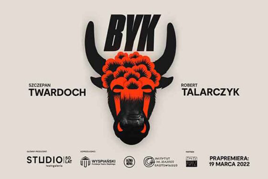 „Byk” na podstawie tekstu Szczepana Twardocha to drugi po „Pokorze” tekst dramatyczny autora bestsellerowych powieści m.in „Króla”, „Morfiny” i „Dracha”. Bohaterem monodramu jest Robert Mamok (na scenie Robert Talarczyk), który w dwóch językach, po polsku i po śląsku zmaga się z własną tożsamością klasową i etniczną. Wyreżyserowany przez Talarczyka i Twardocha obraz to opowieść o mężczyźnie w kryzysie, który mocuje się ze swoją winą i słabościami, waży sukcesy i klęski, konfrontuje się z wagą rodzinnej tajemnicy, z brzemieniem surowego, śląskiego wychowania, z rozpaczą, gniewem i goryczą. Reżyserzy do współpracy zaprosili twórcę prestiżowych scenografii filmowych („Ida”, „Zimna Wojna”, „Jesteś bogiem”, „W ciemności”), Marcela Sławińskiego oraz kompozytora Aleksandra Nowaka, autora muzyki operowej m.in. do „ahat ilī – Siostra bogów” (libretto: Olga Tokarczuk), „Drach. Dramma per musica”, „Pokora. Dramma giocoso” (libretta: Szczepan Twardoch).