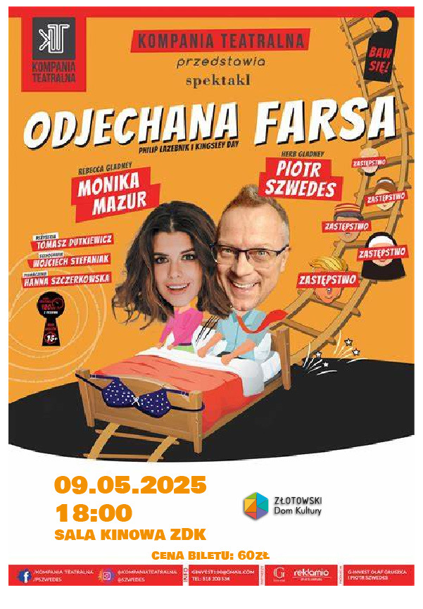 Ostrzegamy! "Odjechana farsa" - najbardziej odjechane i nieprzewidywalne dwie godziny twojego życia! Obejrzenie "Odjechanej farsy" może być przyczyną niemożności powstrzymania śmiechu i grozi intensyfikacją dobrego humoru. Przed wizytą w teatrze skonsultuj się z lekarzem lub farmaceutą. A potem, niezależnie co powiedzą… i tak przyjdź na "Odjechaną farsę". Najwyżej umrzesz ze śmiechu…