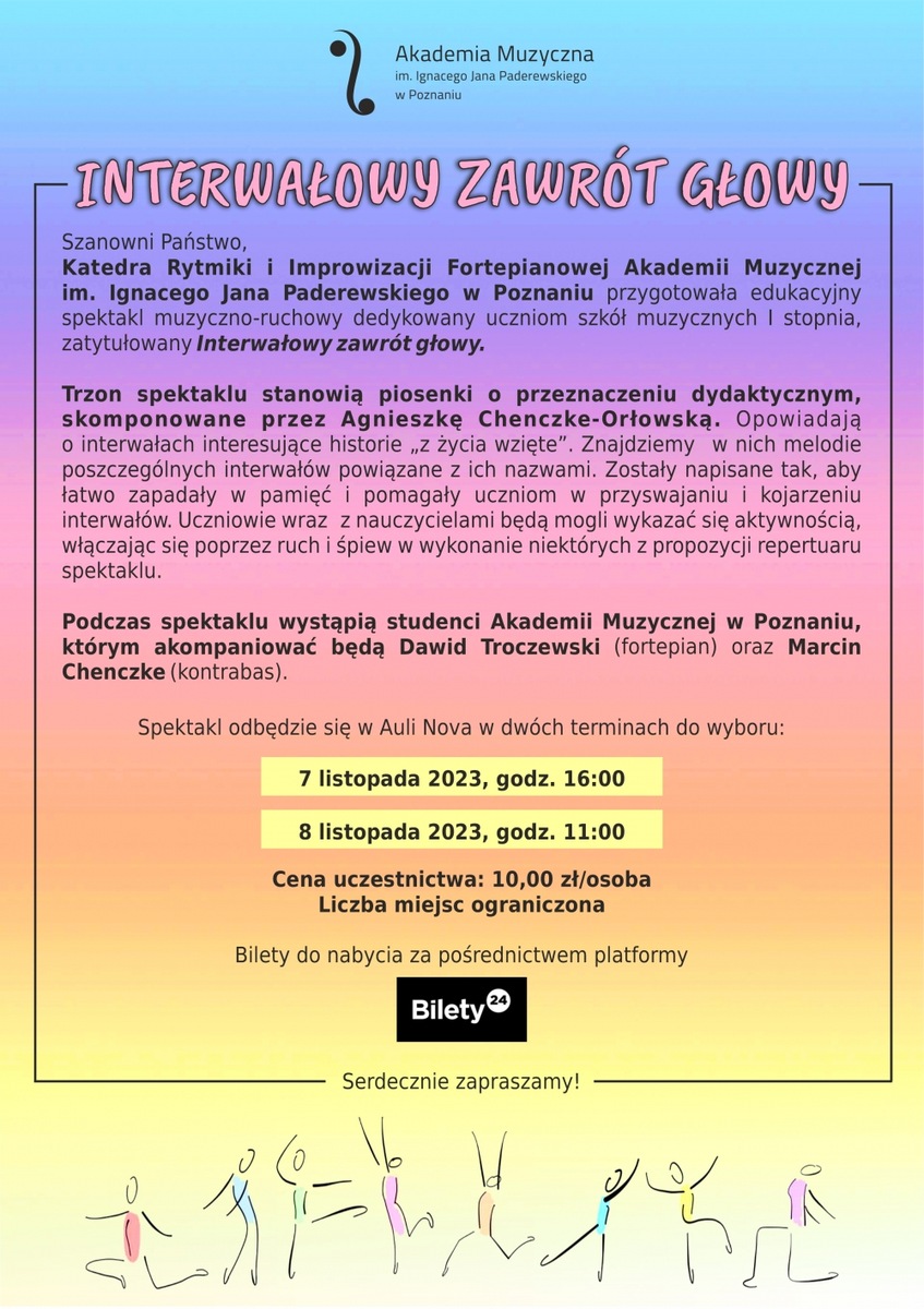 Katedra Rytmiki i Improwizacji Fortepianowej Akademii Muzycznej im. Ignacego Jana Paderewskiego w Poznaniu przygotowała edukacyjny spektakl muzyczno-ruchowy dedykowany uczniom szkół muzycznych I stopnia, zatytułowany Interwałowy zawrót głowy.