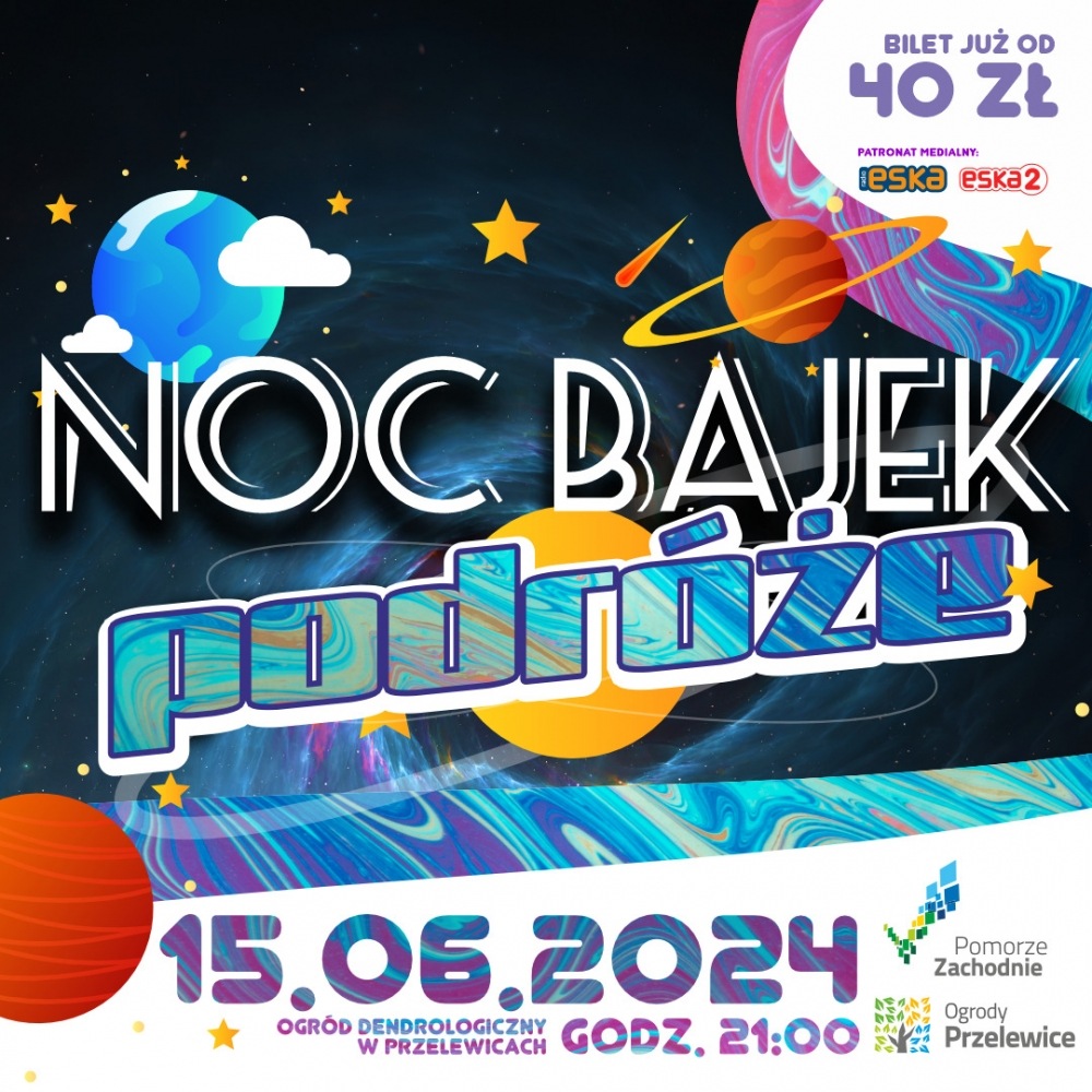 Wyrusz wraz z nami w podróż pełną przygód i świateł. Noc bajek to wydarzenie znane już nie tylko w skali naszego województwa, ale również w całej Polsce. Każda edycja jest inna, każda ma inny temat przewodni, ale wszystkie łączy jedno: niesamowita podróż do przepięknego świata bajek, baśni, muzycznych przebojów znanych wszystkim najmłodszym uczestnikom, skąpana w fenomenalnej oprawie świetlnej. Nie byłoby to tak wyjątkowe wydarzenie, gdyby nie magiczne miejsce - Ogród Dendrologiczny w Przelewicach. Tu, w otoczeniu ponad 2000 różnych gatunków drzew, krzewów i roślin zielnych, po raz siódmy przeniesiemy się w świat bajek, na moment wcielimy się w postać baśniowego bohatera, rozkoszując zmysły wyjątkową grą świateł i magii.*******