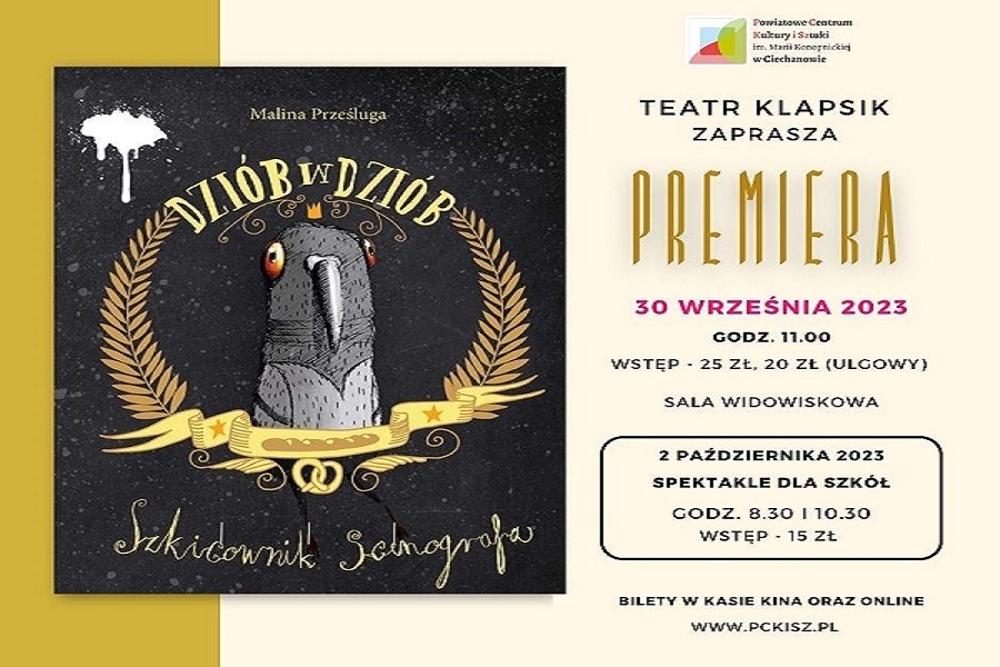 Porywająca, a przy tym zabawna i wzruszająca opowieść o odwadze, uczciwości, potrzebie otwartości i współpracy. Opowieść rozgrywa się na blokowisku pomiędzy zaślepioną pragnieniem władzy subkulturą gołębi, wrogiem ptaków – kotem i wróblem, poszukującym swojej wspólnoty. Reżyseria: Edyta Bojkowska-Kolak. Sala widowiskowa, wstęp – 25 zł, 20 zł (ulgowy) w Kasie Kina oraz online*******