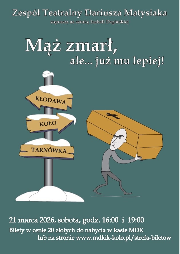 Zapraszamy na spektakl w reżyserii Dariusza Matysiaka pt. „Mąż zmarł, ale…już mu lepiej”*******