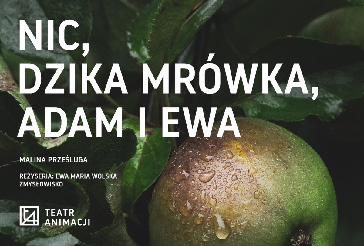 Co było, zanim pojawił się świat? Nic. Wielkie, syte i zadowolone Nic. I nic nie zakłócało jego spokoju. Dopóki nie wiedzieć skąd nie wygramoliła się Dzika Mrówka, chcąca założyć kolonię mrówiątek. A tuż za nią Adam, który z całych sił czuje, że musi szukać... Tylko czego? Kogo? Może Ewy, która też zjawia się nagle z ogromną potrzebą bycia odnalezioną. Ale czy gdy tych dwoje na siebie trafi, wszystko od razu będzie wspaniale...? Niekoniecznie, przecież Adam i Ewa są od siebie tak różni i tak mało o wszystkim wiedzą. Tymczasem w okół, powolutku i nieśmiało budzi się do życia świat... I miłość... I... "Nic, dzika mrówka, Adam i Ewa" to tekst, który postanowiliśmy opowiedzieć wyłącznie za pomocą słów, dźwięków, zapachów i drgań. Bo tak najlepiej...