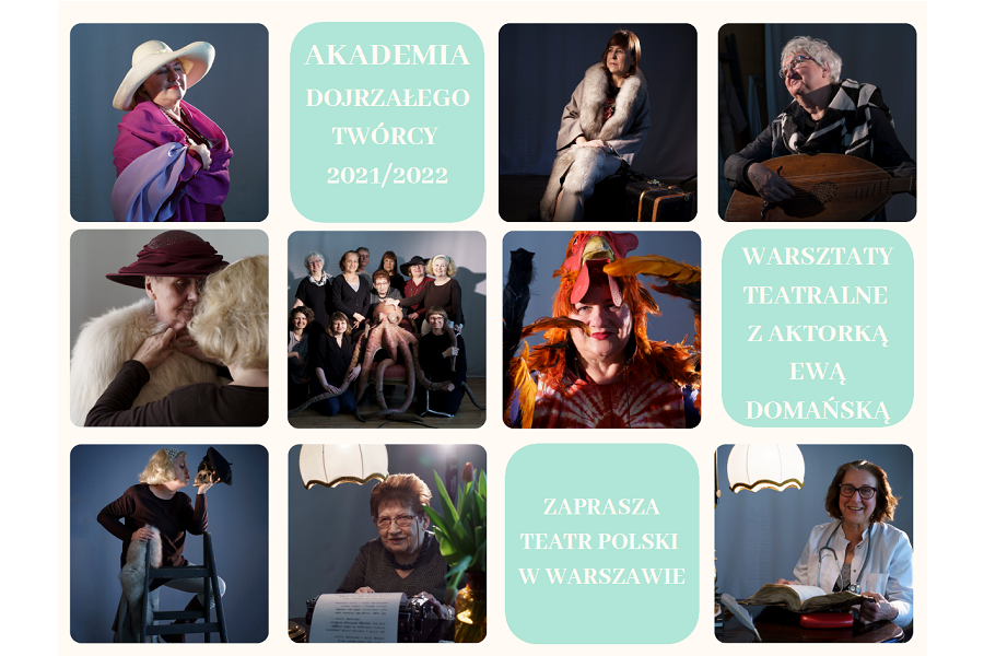 AKADEMIA DOJRZAŁEGO TWÓRCY Warsztaty teatralne z aktorką Teatru Polskiego Ewą Domańską. Nigdy nie jest za późno, by spełnić marzenie i w blasku świateł stanąć na scenie. Zajęcia przybliżą warsztat aktorski, pokażą jak ćwiczymy dykcję, głos, a także ciało. Każda osoba będzie mogła popracować nad ulubionym tekstem - wierszem, monologiem lub prozą poetycką. Praca z emocjami da możliwość znalezienia swojej własnej formy ekspresji. Spróbujemy improwizacji i nauczymy się stawiać czoła tremie. Zajęcia odbywają się w poniedziałki o 12.00 w sali prób Teatru Polskiego. Cena biletu: 5 zł.*******