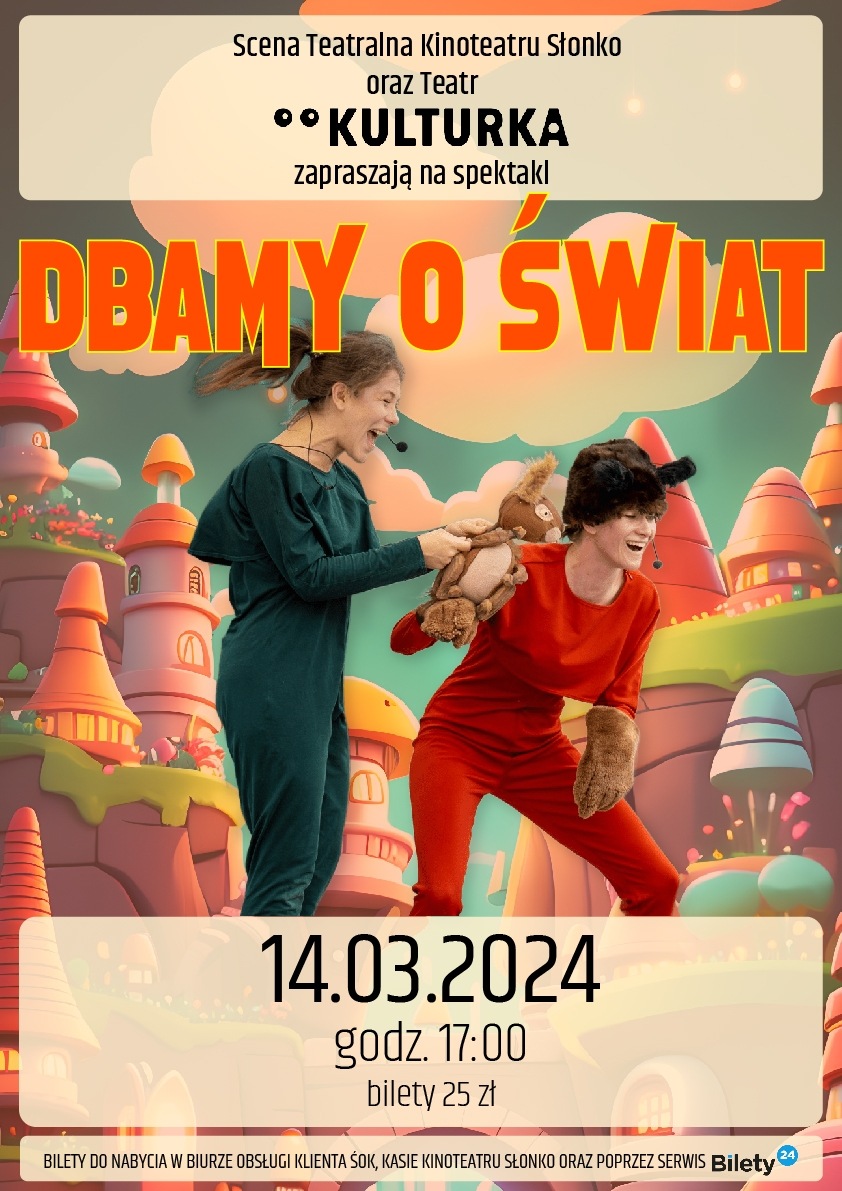 Scena Teatralna Kinoteatru Słonko oraz Teatr Kulturka zapraszają na ekologiczny spektakl dla dzieci pod tytułem „Dbamy o świat”.