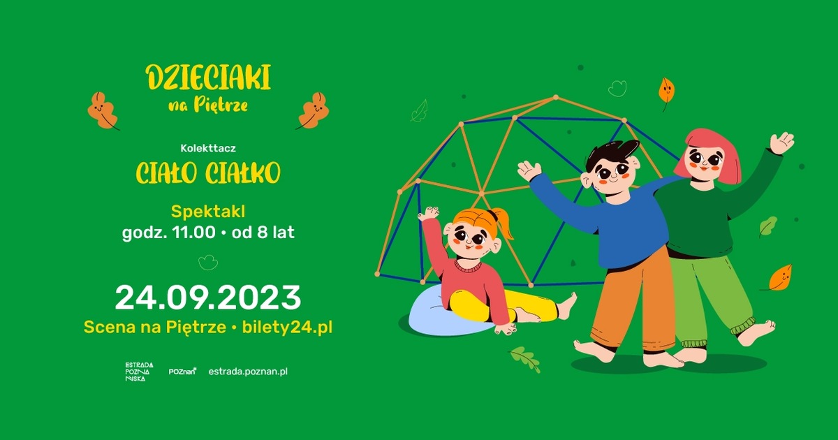 Dzieciaki na Piętrze, 24.09.2023, niedziela, godz. 11.00 KOLEKTTACZ Spektakl: CIAŁO CIAŁKO Bilety (ta sama cena zarówno dla dziecka, jak i opiekuna): - 25 zł (przedsprzedaż do 11.09) - 30 zł (sprzedaż regularna) Czas trwania: 50 min Wiek odbiorców: od 6 lat Osiem ciał na scenie. Cielsk, ciał, ciałek. Poruszamy się... Szukamy rozmowy o tym, co nas dotyka... O dojrzewaniu, nowym ciele, cyklu życia, wolności... Nasza przyszłość. Jakbyśmy sobie jej nie wymyślili, i tak nas zaskoczy. We wrześniowej odsłonie Dzieciaków na Piętrze, zapraszamy Was do wzięcia udziału w wyjątkowej wizualno-ruchowej podróży w głąb siebie. Ciało Ciałko to spektakl o uniwersalnych, bliskich nam wszystkim stanach i emocjach. W swojej prostocie udowadniający,...