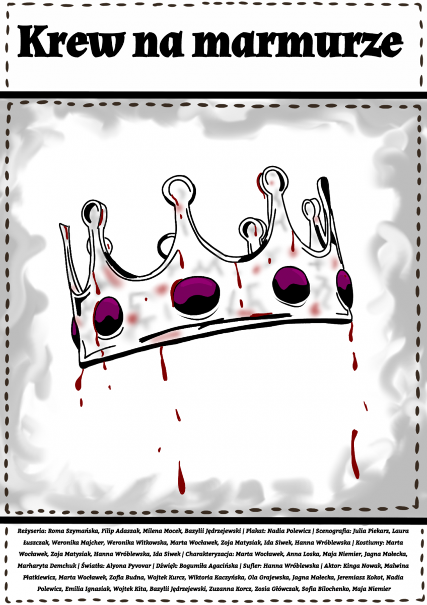 Klasa 2b,, Krew na marmurze" Gdzieś, poza znanym nam czasem i miejscem, w mistycznym Bladym Mieście, wybucha plaga. Gdy kolejne dzielnice walczą z szalejącą epidemią, królowa Melma zmaga się z rodzinnym problemem. Młody książe Edos, bez zgody królowej, oświadcza się nisko urodzonej córce piekarza, Veninie. Młoda i piękna intrygantka zaczyna torować sobie drogę do realnej władzy oraz zemsty, wykorzystując zamieszanie zaistniałe w pałacu. Jednak w wszechobecnym chaosie, politycznych grach, niektórzy nadal walczą o przyszłość miasta.*******