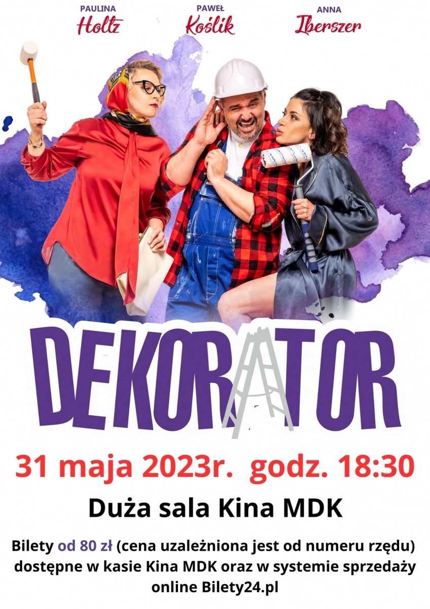 Walter jest malarzem pokojowym, choć po cichu marzy o zostaniu profesjonalnym aktorem. Przy tym ma tendencje do ubarwiania prozy życia. Dlatego przedstawia się swojej chlebodawczyni Marcii jako „dekorator“. Pan gaduła będzie miał się czym wykazać – wkrótce uratuje damę w opałach, a przynajmniej jej małżeństwo... "DEKORATOR" to nowa produkcja twórców hitu "Rubinowe gody". Tym razem jednak mamy niezwykłą przyjemność zaprosić Państwa na rasową, brytyjską farsę, w której ścierają się emocje, charaktery, a napięcie rośnie od pierwszego trzaśnięcia drzwiami! Występują: PAULINA HOLTZ ANNA IBERSZER PAWEŁ KOŚLIK Autor: DONALD CHURCHILL Reżyseria: PAWEŁ FERENS Przekład: KLAUDYNA ROZHIN Scenografia: WOJCIECH STEFANIAK Producent: KAMILA KĘDZIORA | www.kedziora-teatr.pl*******