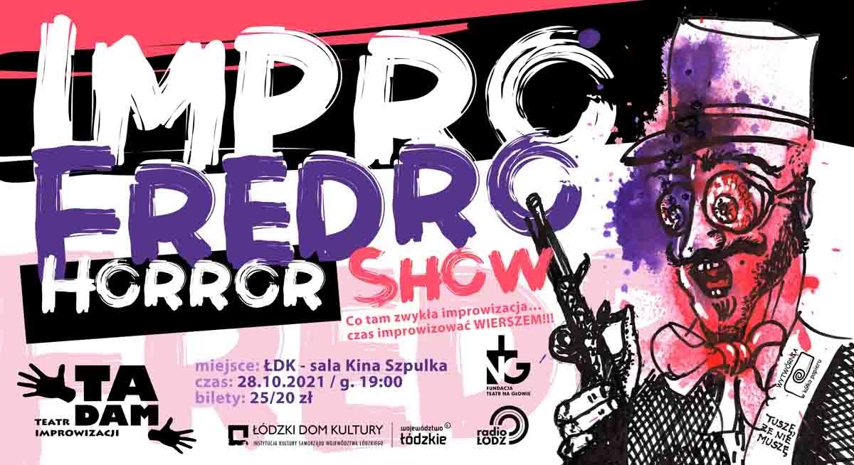 Żarty się skończyły! Myślicie, że improwizacja to rozrywka do pośmiania się? Wydaje Wam się że Fredro pisał komedie? Jeśli tak, to macie rację! Spróbujemy przeprowadzić eksperyment i do Waszych salw śmiechu dołożyć coś jeszcze… odrobinę dreszczyku emocji, nieopanowanego strachu, rozbudzenie mrocznych perwersji a to wszystko ubrane we fredrowski, lekki, rymowany klimat. Od Was zależeć będzie kim będą bohaterowie improwizowanego horroru! Dlaczego hrabia pod poduszką trzyma nóż? Kto w trakcie pełni pokaże swoje złowrogie oblicze? Czy to hrabina chciała otruć koniuszego za romans z pokojówką? Już niebawem Teatr Improwizacji Tadam odpowie na te wszystkie tajemnicze pytania improwizowanym, rymowanym ośmiozgłoskowcem Odkryje przed Wami świat mrocznych i pikantnych sekretów miejsc i postaci, które Wy, kochani widzowie, nam wybierzecie. Dlatego Wasza obecność w dniu 28 października 2021 o godzinie 19 w Łódzkim Domu Kultury jest obowiązkowa! Będzie śmieszno! Będzie straszno! Będzie wierszem! Będzie IMPRO FREDRO HORROR SHOW!
