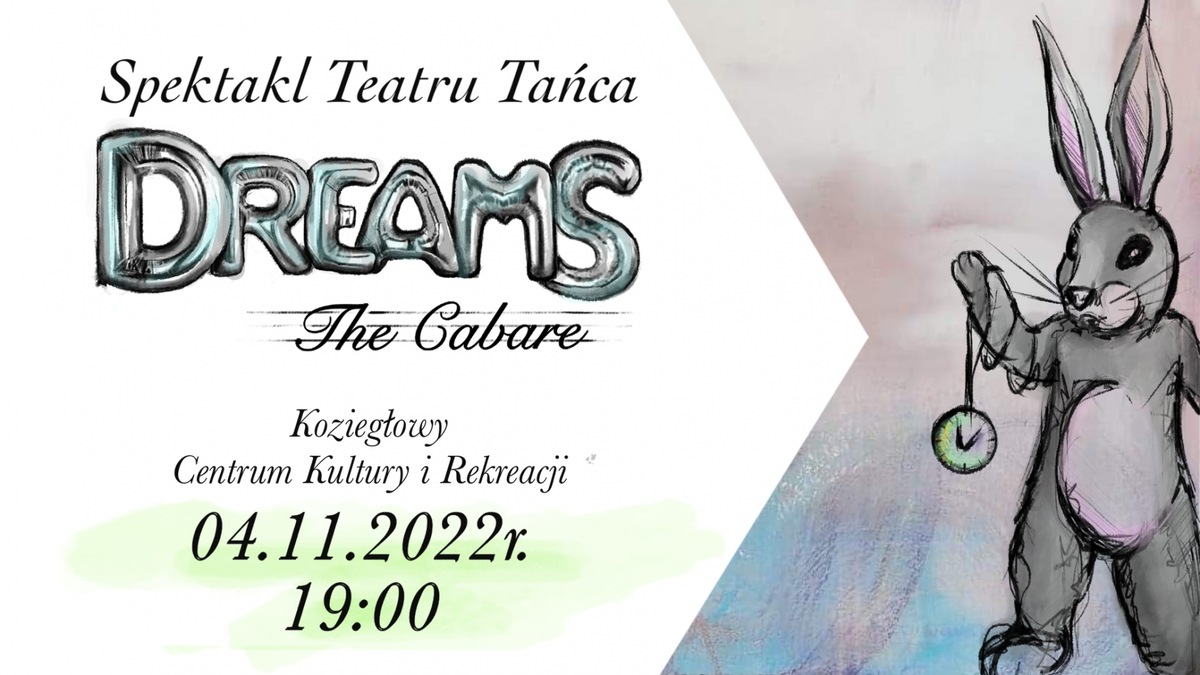 „Załóżmy, że każdej nocy potrafiłeś śnić dowolny sen, który chciałeś śnić...” Sen to stan cyklicznie pojawiający się i przemijający, podczas którego następuje zniesienie świadomości. Marzenie jest powstającym w wyobraźni ciągiem obrazów i myśli odzwierciedlających nierealne pragnienia. Z połączenia tych dwóch powstał szkic, który wykorzystaliśmy przy tworzeniu spektaklu. Co łączy te dwa stany świadomości? Jakie są Twoje najskrytsze marzenia? Śnisz o czymś? Pamiętasz swoje sny? Boisz się ich? Marzysz? Zapraszamy Cię w naszą podróż. 4 listopada na godzinę 19:00 Gminny Ośrodek Kultury Sokół zaprasza do Centrum Kultury i Rekreacji w Koziegłowach na premierę spektaklu teatru tańca Dreams. Koncept: Tomasz Kłodawski. Choreografia Tomasz Kłodawski,...