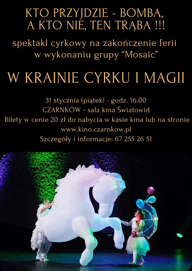 Spektakl cyrkowy na zakończenie ferii w wykonaniu grupy "Mosaic" - W KRAINIE CYRKU I MAGII.