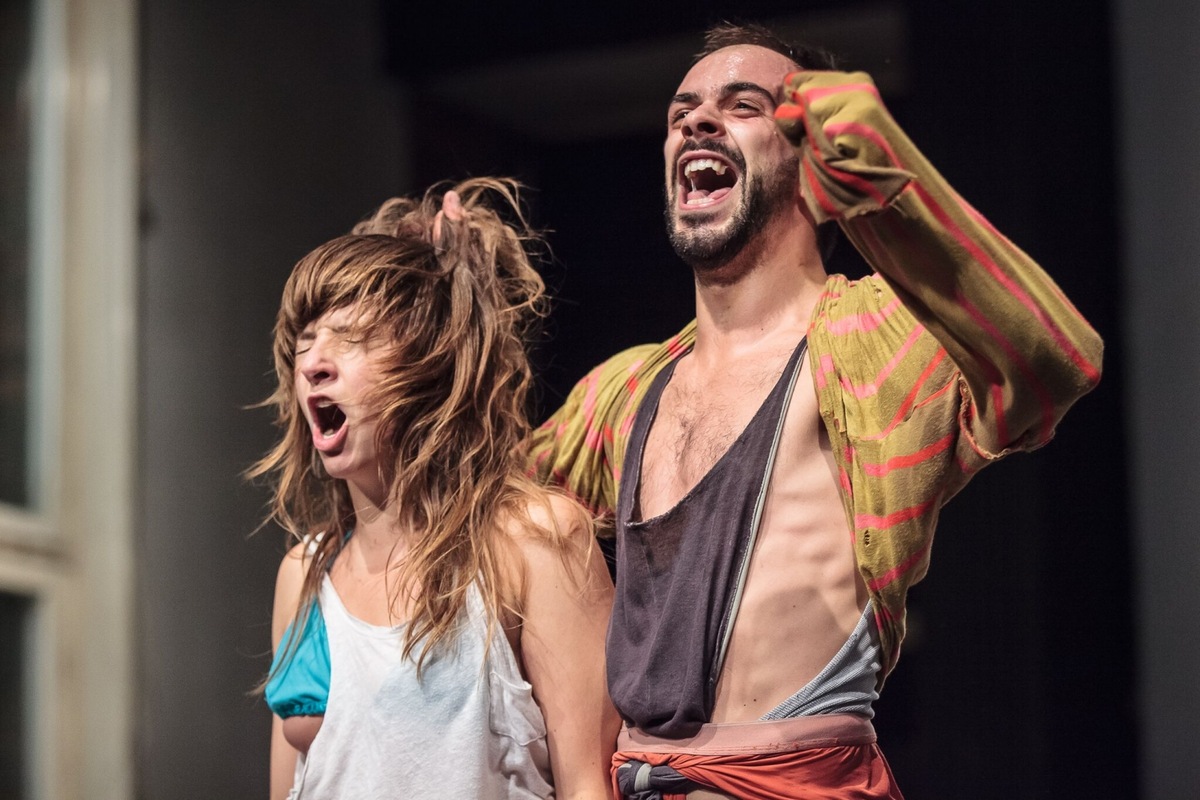 After the stripped down, radical corporality of Dawn (2013), Adrienn Hód’s production made in 2014 is physicality woven into a chain of emotion. The subconscious opens in a trance invoked by continuous movement. Splinters of sexuality, arias of impulsive gasps, a game of robust yet refined and sensitive humor, negating taboos. The torsos of four dancers rendered as a tangling of their inner histories. A negotiation between heaven and earth, and a triumph over prosaic urban reality.