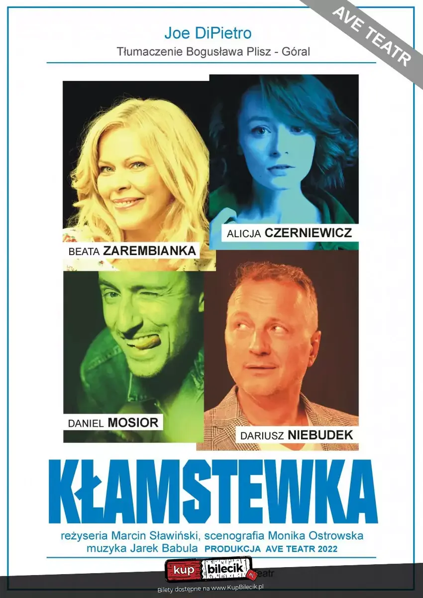 Skłonność do mijania się z prawdą wynika w dużej mierze z ludzkiej słabości do niewinnych Kłamstewka. A co jeśli są one tylko z pozoru niewinne? Czy kłamstwo w dobrej wierze, to na pewno bezpieczna gra? Autor sztuki Joe DiPietro przedstawia historię młodego małżeństwa, które przeżywa swój pierwszy kryzys. Jakich sztuczek użyją doświadczeni rodzice, aby uratować ich związek? A co jeśli przy okazji, na jaw wyjdą inne Kłamstewka skrywane przez lata. Spektakl Joe DiPietro to pełna inteligentnego humoru komedia, z błyskotliwymi dialogami, niczym z filmów Woody Allena, w której my widzowie przeglądamy się jak w lustrze. Reżyserem spektaklu jest Marcin Sławiński, tłumaczenie Bogusława Plisz - Góral, scenografię zaprojektowała Monika Ostrowska, a muzykę stworzył Jarek Babula. W spektaklu występują: Alicja Czerniewicz, Beata Zarembianka, Daniel Mosior oraz Dariusz Niebudek.