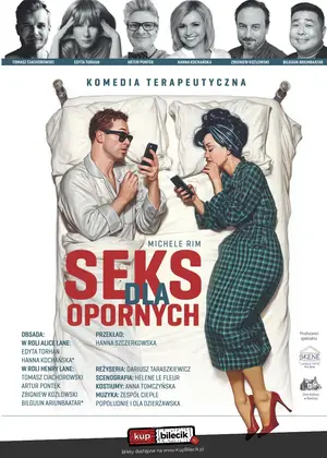 Alice i Henry, małżeństwo z wieloletnim stażem, przechodzą kryzys. Zamiast iść na kosztowną terapię, postanawiają wziąć sprawy w swoje ręce i prowadzić widza przez labirynt komicznych sytuacji. Przyjdź i zobacz, czym to się dla nich skończy. Spektakl jest idealną okazją dla każdego, niezależnie od stażu małżeńskiego, by spojrzeć na temat miłości z innej perspektywy, z odrobiną dystansu i mnóstwem śmiechu! Bo nie trzeba się kłaść na kozetkę, by przejść udaną terapię par. Wystarczy dawka fantastycznej zabawy. "Seks dla opornych" to komedia terapeutyczna, która udowadnia, że szczery śmiech i dystans do siebie to najlepsza terapia.