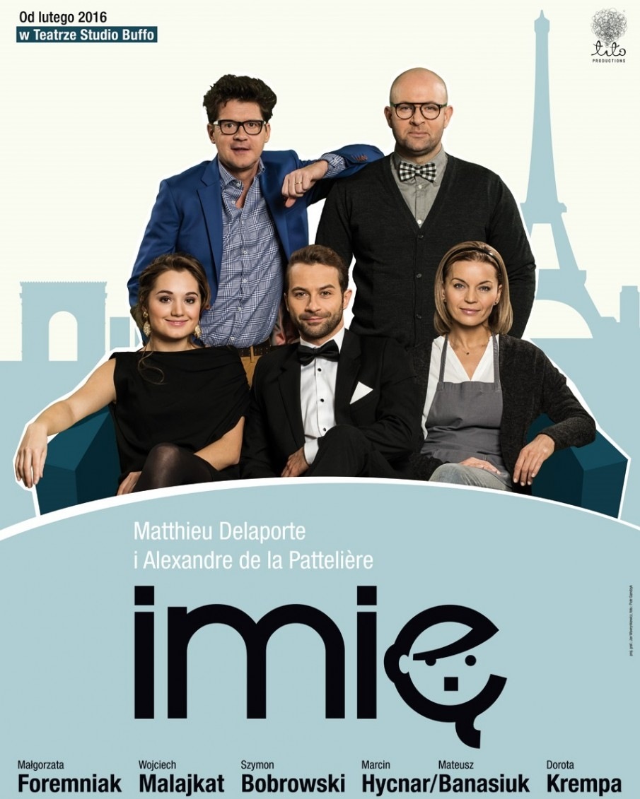 Spektakl "Imię" wyprodukowany w 2016 roku, dziś zaliczany jest do najlepszych polskich produkcji. Akcja rozgrywa się w ciągu jednego wieczoru, podczas kolacji wyprawianej przez profesora literatury Pierre'a (Szymon Bobrowski) i jego żonę Elisabeth (Małgorzata Foremniak) w ich paryskim mieszkaniu. Zaproszeni goście, to przyjaciel domu, puzonista - Claude (Marcin Hycnar / Mateusz Banasiuk), brat Elisabeth, błyskotliwy przedsiębiorca - Vincent (Wojciech Malajkat) oraz jego dużo młodsza, ciężarna partnerka Anna (Dorota Krempa). W tym gronie przebieg spotkania wydawał się doskonale przewidywalny. Jednak tym razem typowe, drobne sprzeczki przerodzą się w prawdziwą bitwę.