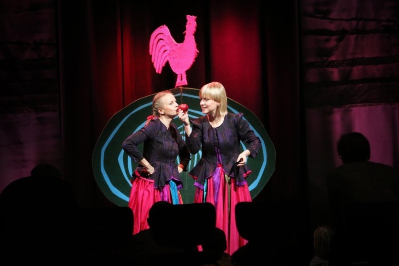 Prosta opowieść o jabłonce, na której zakwita czerwono-zielone jabłko. Pieje kogut, zawiał wiatr - kto zerwie jabłko z jabłonki? Spektakl wypełniony śpiewem, tańcem i ludowymi zabawami.