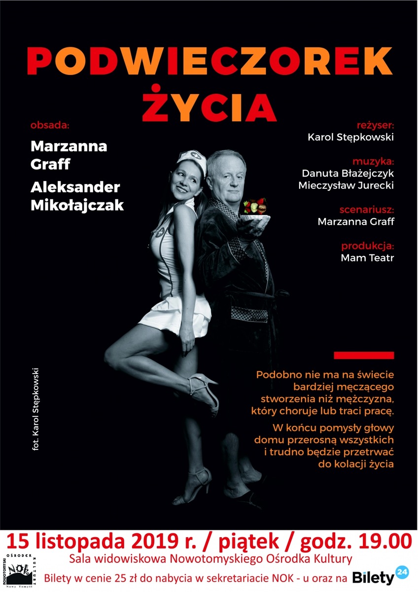 Podobno nie ma na świecie bardziej męczącego stworzenia niż mężczyzna, który choruje lub traci pracę. Główny bohater komedii „Podwieczorek życia” - Jacuś - zawsze miał skłonność do przesady w swoich chorobach. Katar urastał do rangi dżumy. Tym razem problemy narastają bo Jacuś nie ma pracy. Jego żona – Anusia – musi wykazać się anielską cierpliwością i nie lada pomysłowością aby dać sobie radę z wymysłami męża.*******