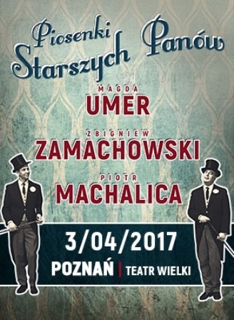Piosenki Starszych Panów w wykonaniu Magdy UMER, Piotra MACHALICY oraz Zbigniewa ZAMACHOWSKIEGO już w kwietniu w Teatrze Wielkim w Poznaniu.