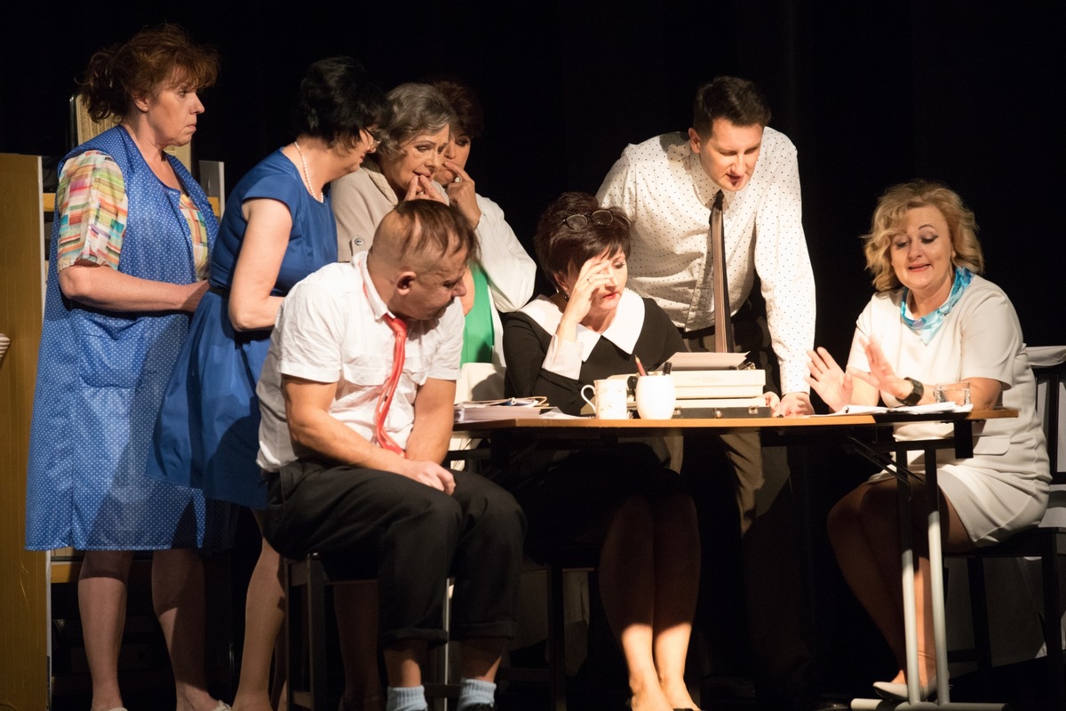 Akcja spektaklu rozgrywa się w biurze architektonicznym gdzieś w PRL-u, zdaje się, że niedaleko Mosiny. Wśród nieco ekscentrycznych pracowników o specyficznym poczuciu humoru znajduje się morderca! Adaptacja wprowadza widzów w klimat lat 60., które diametralnie różniły się od lat współczesnych. W ówczesnej pracowni nikt nie słyszał o komputerach, laptopach, czy też telefonach komórkowych. W domach na stołach królowały pasztet i kaszanka, a w radiu rozbrzmiewała muzyka Czerwonych Gitar, sporadycznie Batlesów, natomiast ikoną mody była Bardotka.